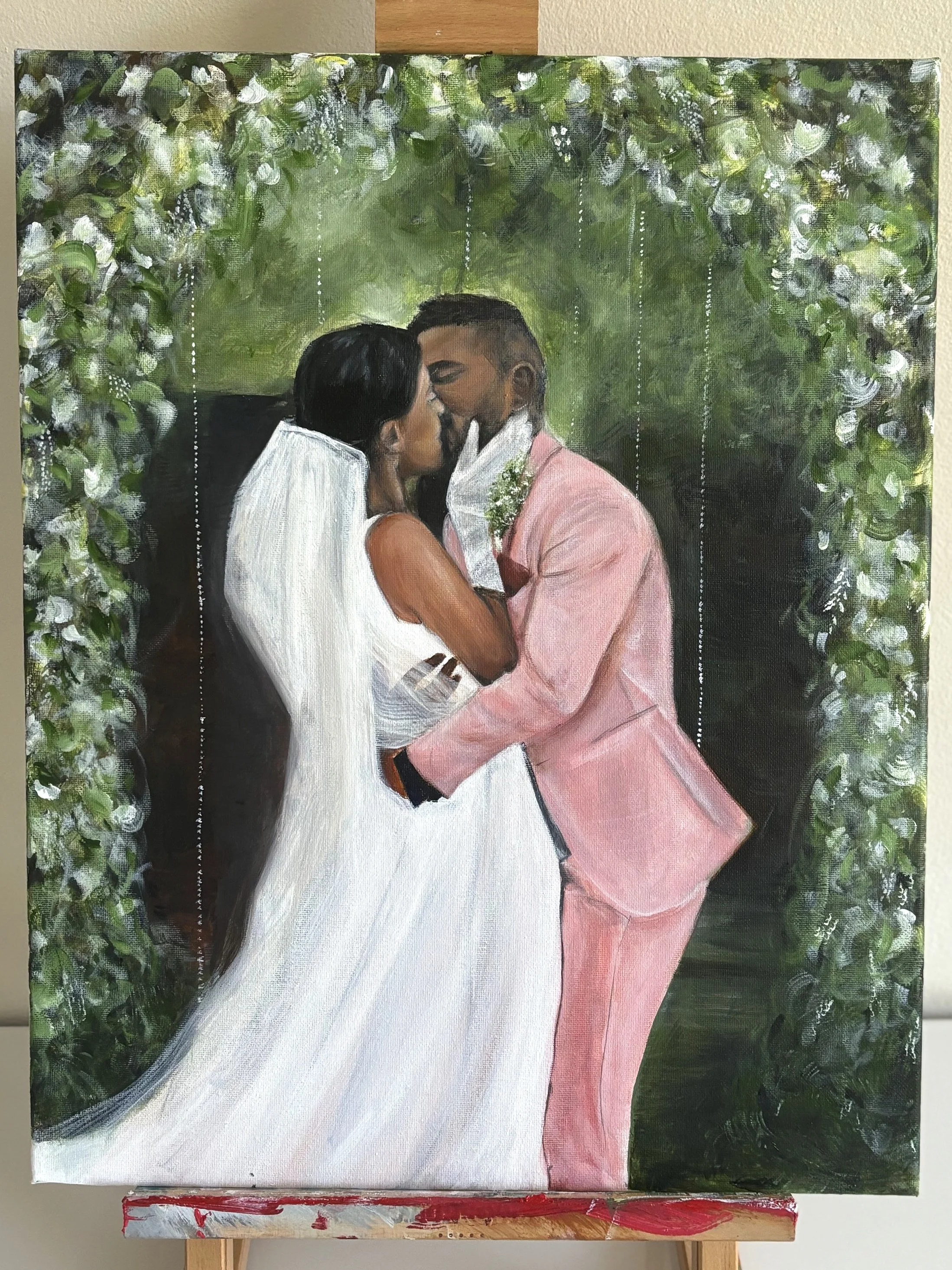 “Simmone was my live wedding painter for my wedding in February! Her talent is incredible along with her personality and she painted the most beautiful painting of our wedding that I could have ever imagined! She captured the essence and the more I look, the more detail i am surprised with! It’s the most beautiful memory truly and I can’t thank Simmone enough!"